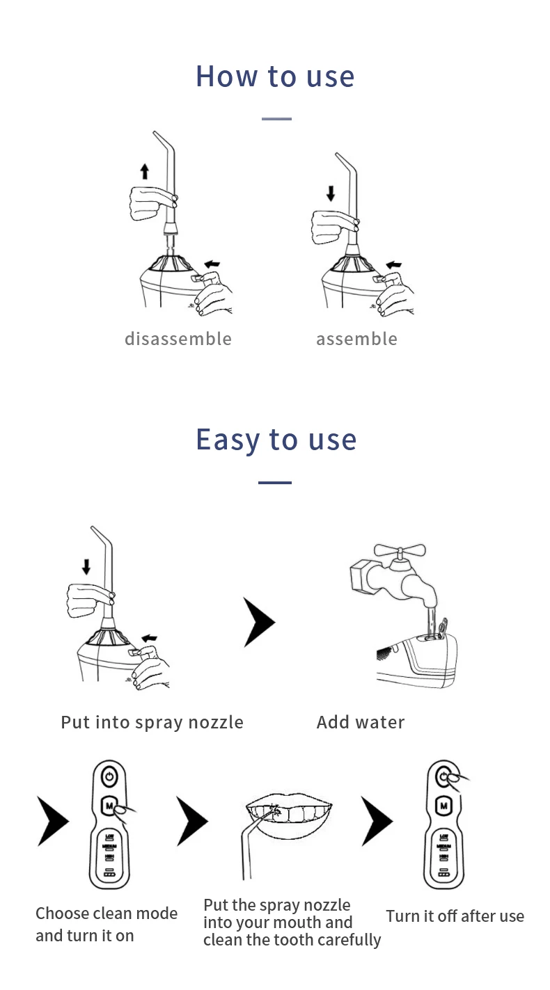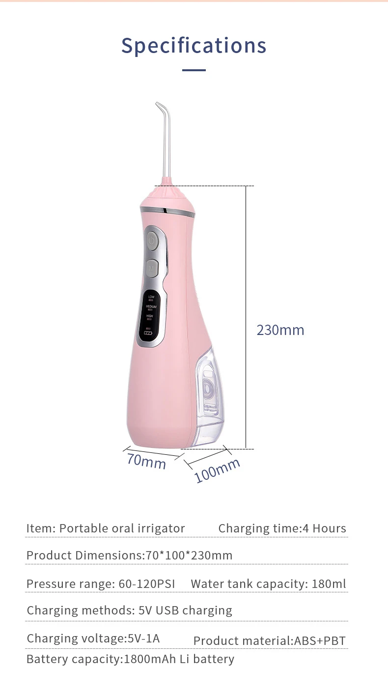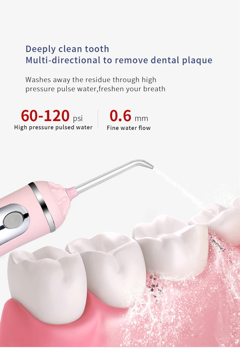 Давление воды может быть до 120PSI, глубоко и быстро, чтобы очистить ваш зуб;