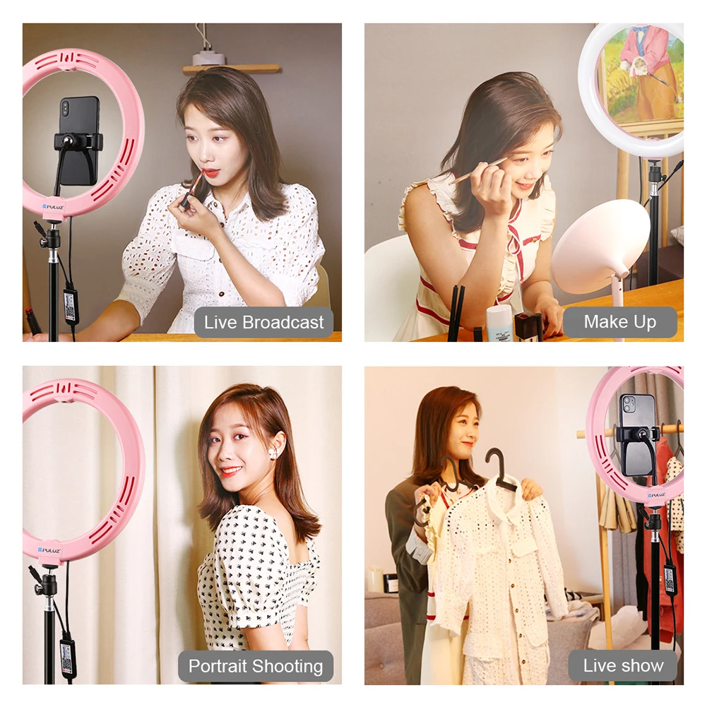 Особенности: * 1. Светодиодный кольцевой светильник можно установить на подставку и носить с собой или снять с стойки в любое время, разъем 1/4 "позволяет подключить его к своему штативу. * 2. Регулируется. Шариковый стабилизатор главный может поворачиваться на 360 градусов и регулироваться под любым углом. * 3. Яркость. Кольцевой светильник состоит из 46 энергосберегающих светодиодных бусин, обладает отличной теплоотдачей, постоянным током, высокой цветопередачей, источником мягкого светильника, улучшает цвет кожи при портретной фотографии. * 4. С регулируемой яркостью. Режим цветового освещения RGB Регулируемая яркость на ваш выбор, вы можете настроить цвет и яркость очень легко, Отличная яркость может быть достигнута без установки дополнительных красочных фильтров. Мягкий естественный светильник разных цветов освещает вашу красоту в разных случаях. * 5. Несколько режимов управления. С Bluetooth 4,0 беспроводной умный Светодиодный Полноцветный RGBW заполняющий свет, для различных сцен заполняющий свет, через Android 4,0 и выше, iOS iPhone 4S выше смарт-устройства системы для управления выключением/включением заполняющего света, регулировки цвета и яркости света. Usb-порт позволяет использовать его с различными устройствами, такими как Подключение компьютера, блок питания, адаптер зарядного устройства и т. д. * 6. Зажим для телефона подходит для телефонов шириной 5,7-9 см.