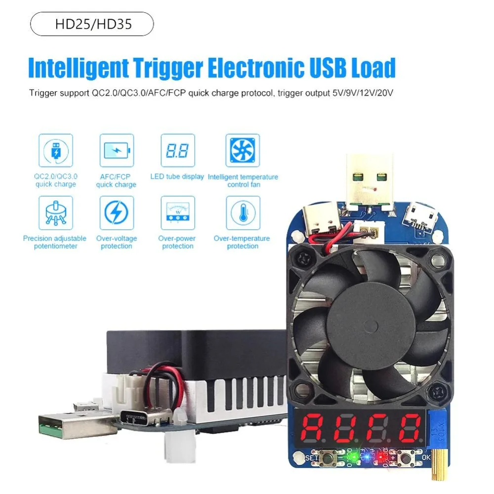 HD25 HD35 триггер QC2.0 QC3.0 Электронный USB нагрузочный резистор разрядка батарея тест регулируемый ток напряжение СВЕТОДИОДНЫЙ дисплей 25 Вт 35 Вт