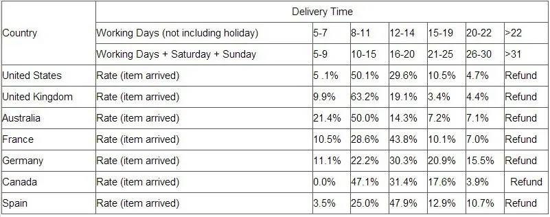 1. Доставка по всему миру. (За исключением некоторых стран и APO / FPO) 2. Заказы обрабатываются своевременно после проверки оплаты. 3. Мы отправляем только по подтвержденным адресам заказа. Ваш адрес заказа должен совпадать с вашим адресом доставки. 4. Доставка в страны, которые входят в комплект, будет осуществлена в течение 3-7 дней с момента получения товара, если доставка будет произведена в течение 1, 2, 3, 5, 5, 5, 7, 10, 10, 10 или 10 дней с момента получения информации. Авиапочта прибудет в большинство стран в течение 10-25 дней, но в Бразилию, Россию, Турцию иногда задержка в связи с тем, что местные почтовые отделения и таможня. (кроме праздничных дней) 5. Время перевозки груза поддерживается перевозчиком и не включает выходные и праздничные дни. Сроки доставки могут меняться, особенно во время курортного сезона. 6. Если вы не получили посылку в течение 30 дней после оплаты, пожалуйста, свяжитесь с нами. Мы отследим отправку и свяжемся с вами как можно скорее. Наша цель – удовлетворение клиентов! 7. Из-за наличия на складе и разницы во времени, мы выбираем для быстрой доставки ваш товар с нашего первого доступного склада.