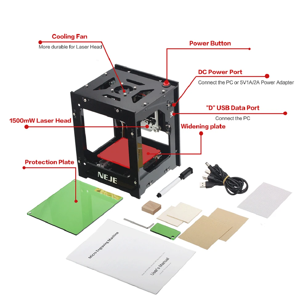 NEJE DK-8-KZ 1500/2000 мВт Профессиональный Настольный лазерный мини-гравер сделай сам