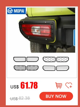 1. Модель автомобиля: для Suzuki Jimny 2019 +2. Цвет: черный3. Материал: нержавеющая сталь/пластик/Резина4. Упаковка включает: 2 шт./компл.5. 100% новый бренд высокого качества6. Украсьте ваш автомобиль очаровательной роскошью яркой