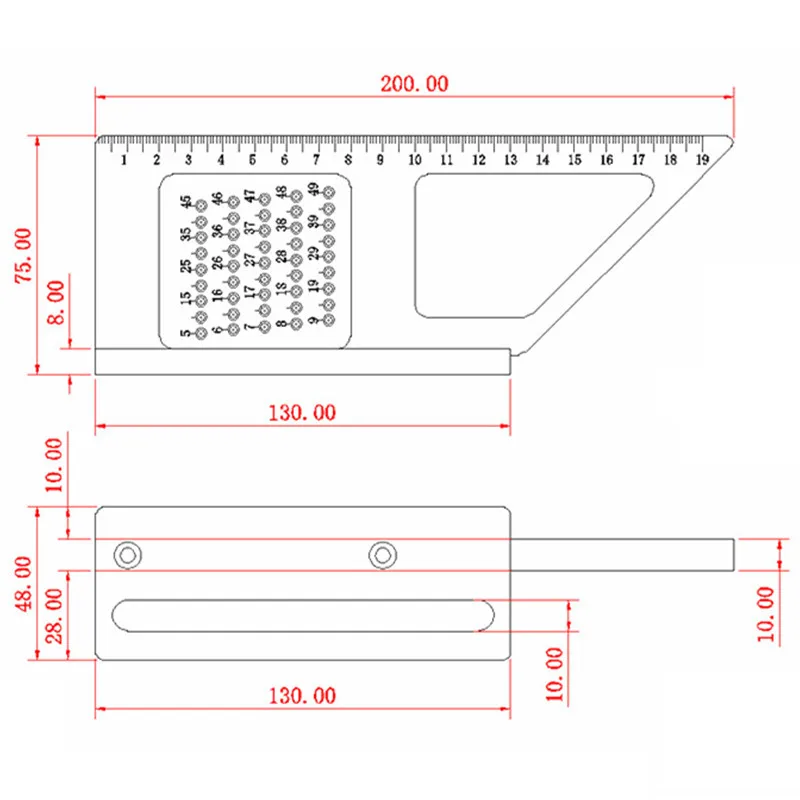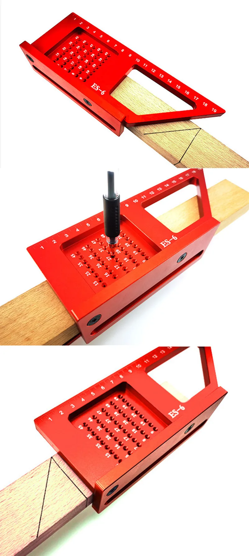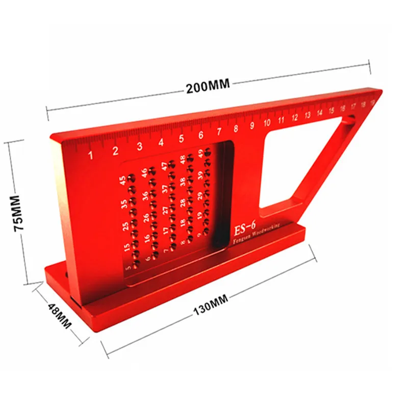 1. Многоцелевой для одного инструмента, точные измерения, маркировка. 2. Изготовлен из алюминиевого сплава, прочный и удобный в использовании. 3. Утолщенный дизайн линейки, делает линейку стабильной и точной. 4. Идеально подходит для diy, инженеров, столярных работ, деревообработки и домашнего использования. Материал: алюминиевый сплав 6061 Цвет: красный Точность измерения: 0,1 мм Отверстие применимо пополнения (5-тонкий УФ-фильтр 49 мм): 0,5-1 мм Поверхностный процесс: Анодное окисление Функции: 1. Маркировка трех размеров 2. Маркировка точного угла 45 ° и 90 ° 3. Расположение отверстия чертеж параллельных линий 4. Измерение и передача 5. Квадратный 6. Линейка высоты Посылка включает: 1 * ES-6