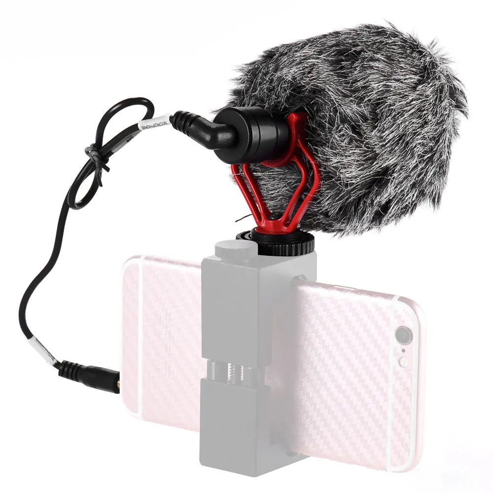 Поставляется с ударопрочным креплением для крепления микрофона на держатели для телефона/крепление для камеры hot shoe. (держатель телефона не входит в комплект.)