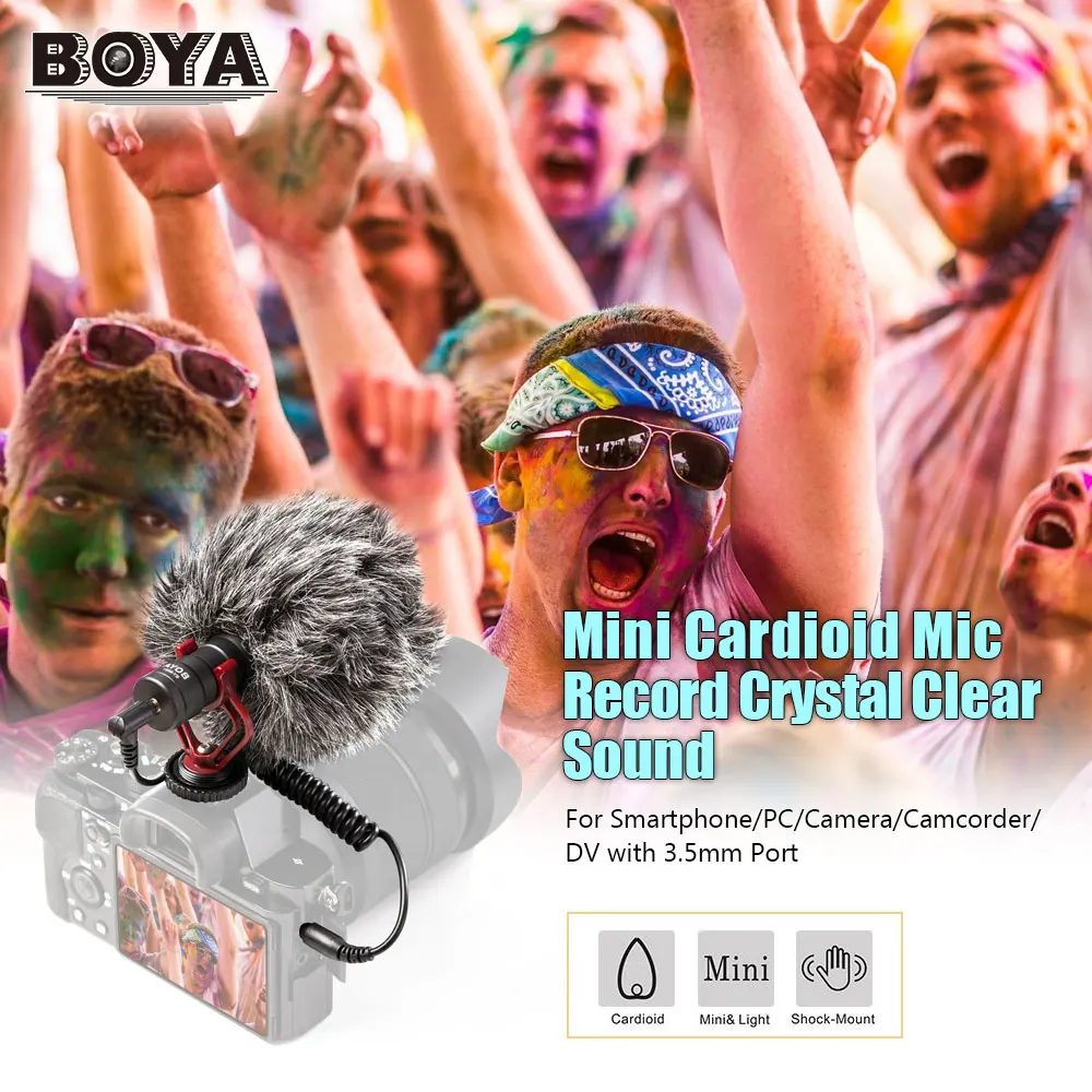 BOYA BY-MM1-кардиоидный микрофон, специально разработанный для улучшения качества звука видео на основе встроенных микрофонов. Он может использоваться на смартфонах, камер, регистраторов, аудиорекордеров, ПК и других записывающие устройства с 3,5 мм разъем.