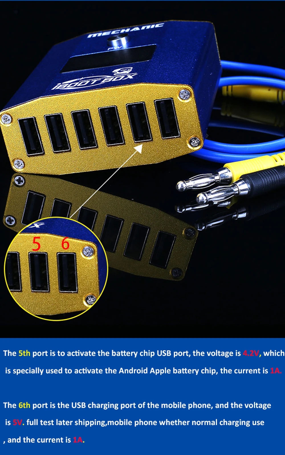 Поддержка iPhone и телефонов Android Android boot line с платой декодера батареи, интеллектуальная Стабилизация напряжения Три входных режима, вход micro USB, вход DC3.5 и Регулируемый вход питания постоянного тока Высококачественный медный сердечник 6 Порты и разъёмы USB выход Светодиодный четырехзначный дисплей, точный Текущий Дисплей Смарт-чип цепи Триггер с одной кнопкой, всего три секунды Выход: шесть выходов USB Выход напряжение: DC4V Ботинки напряжение: DC3.7V-4.2V Выход ток: 3A Размер: 64*70*22 мм Вход режим Mico USB вход DC3.5 Порты и разъёмы вход Регулируемый источник питания постоянного тока