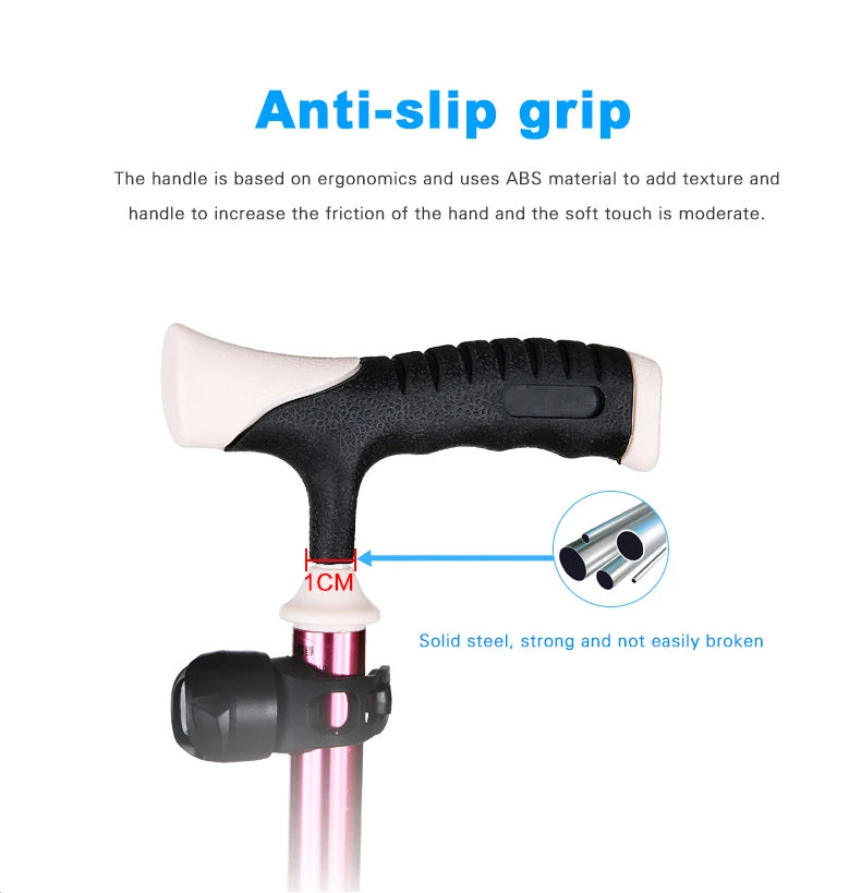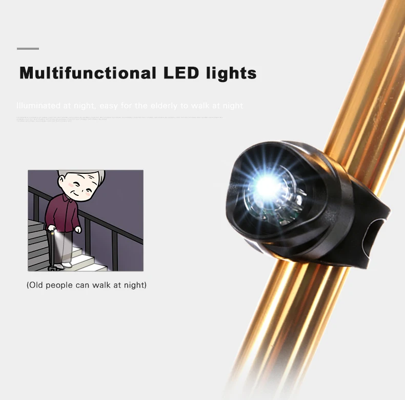 1. Легкая высокоинтенсивная трубка из алюминиевого сплава 2. Оснащен non-slip, не оставляющая следов резиновыми наконечниками 3. Удобные ручки соответствуют человеческой инженерии 4. Регулируемая высота от 71 см до 94 см 5. Легко складывается для хранения и транспортировки 6. Оснащен светодиодный ночной светильник (нажатия лампочка будет светильник) 7. 10 уровней регулировки высоты