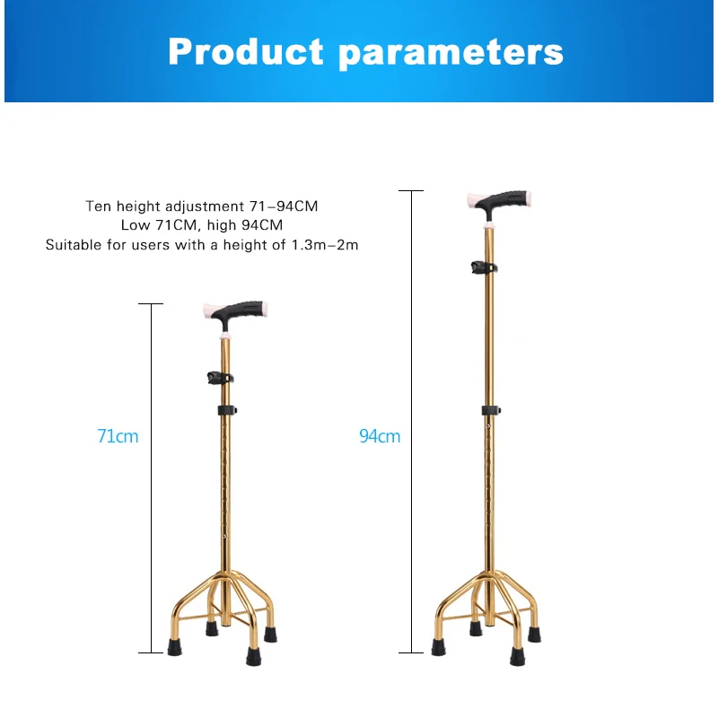 Название продукта: Cofoe трость с четырьмя ножками, Номер модели: KFSZ2010, Размеры: Длина: 7,9 '', Ширина: 5,9'', высота: 71 см-94 см, Вес: 0,48 кг Нагрузка: 200 фунтов Материал: трубка из алюминиевого сплава, Функция: помогает ходить быстрее и стабильнее, Особенности: регулируемая высота, светодиодный светильник Этот Трость имеет пять цветов: Золотой/коричневый/зеленый/розовый/серебристый. Так модно