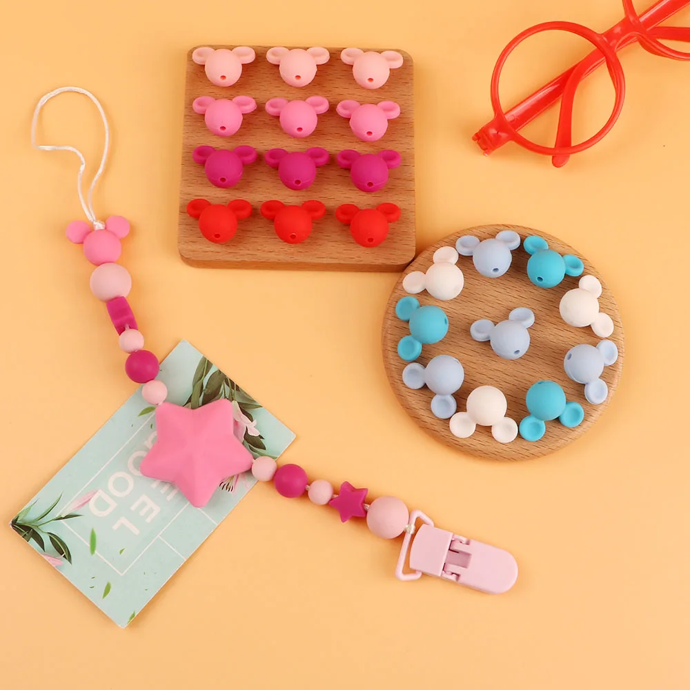 Kovict 30 шт. Детские Силиконовые Бусины Пищевой мультфильм в форме мыши бусины для прорезывания зубов для ожерелий BPA бесплатно детская игрушка для прорезывания зубов для кормления