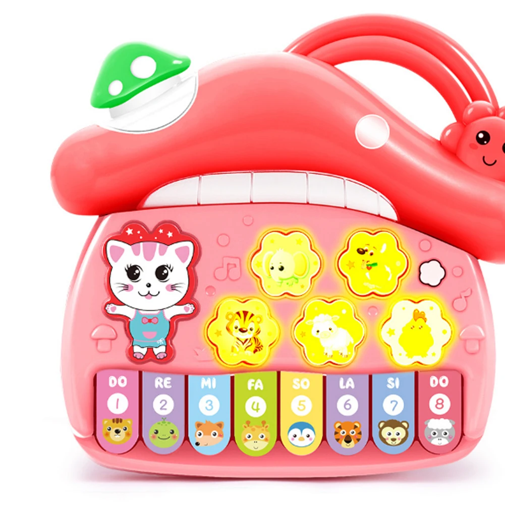 С звуком животных, ритмом детской и светодиодный светильник, ребенок может играть на клавиатуре с 8 музыкальными нотами.