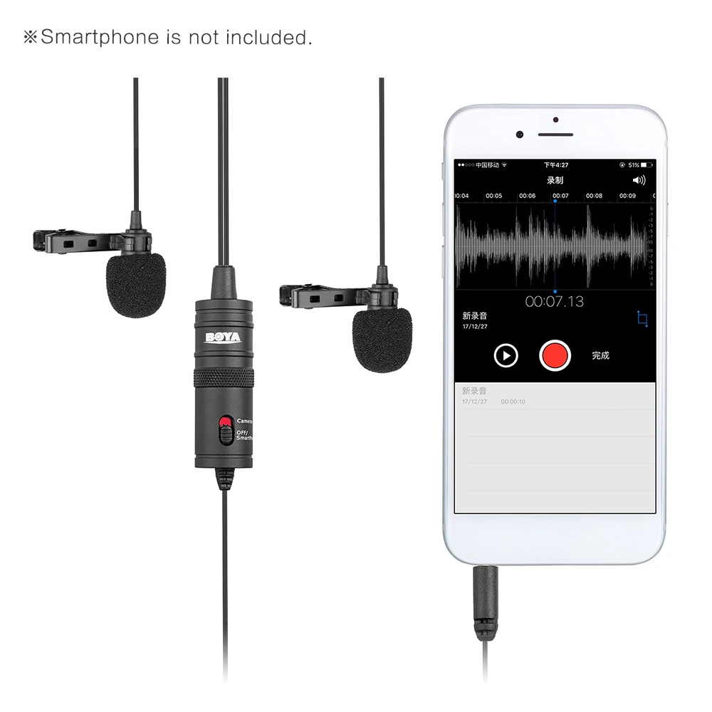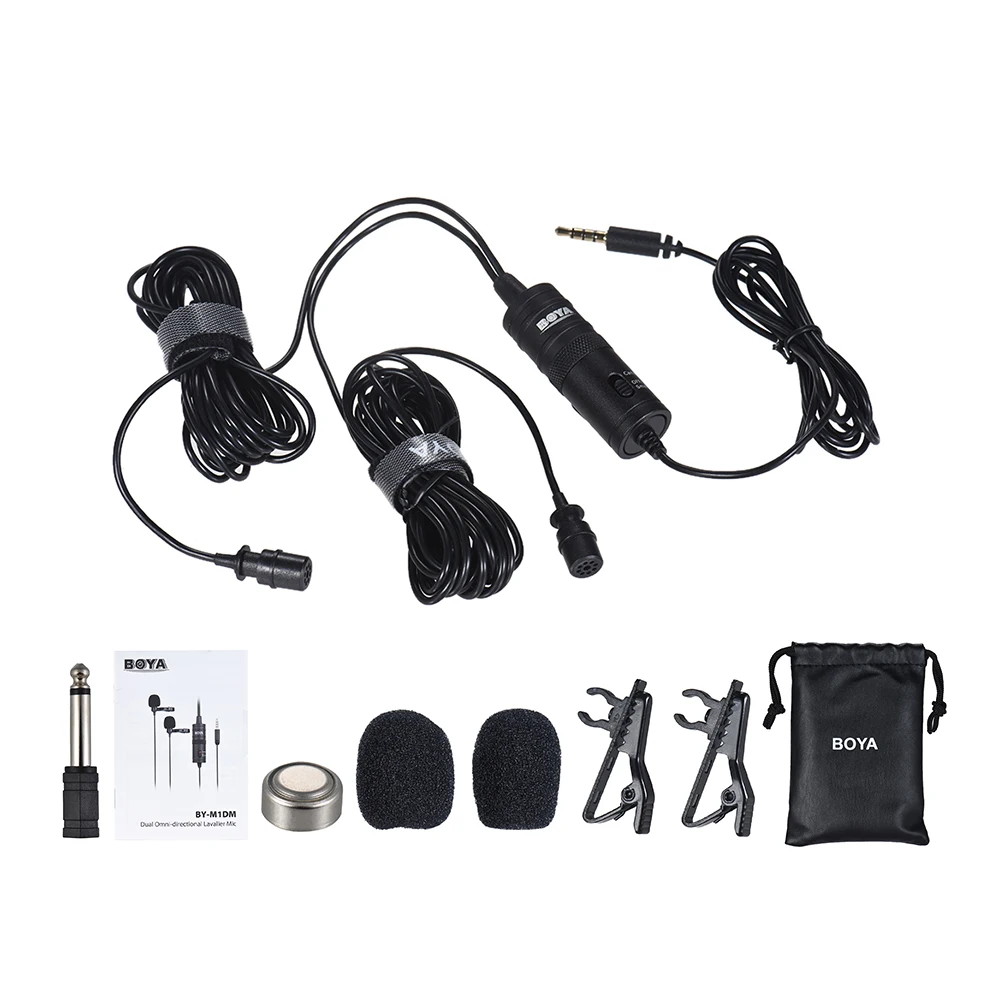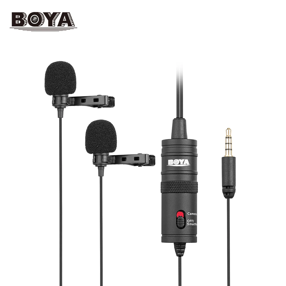 BOYA BY-M1DM-это двойной петличный Универсальный микрофон с одним стереоразъемом 1/8 дюйма, его можно использовать со смартфонами,