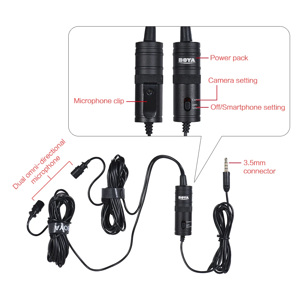 BOYA BY-M1-это всенаправленный петличный микрофон, идеально подходящий для использования в видео, предназначенный для смартфонов, DSLR, видеокамер, аудиорегистраторов, ПК и т. д. Петличный микрофон имеет шаблон звукоснимателя Omni для полного покрытия на 360 градусов. Встроенный 6-метровый (20 ”) кабель с 4-полюсным золотым штекером 3,5 мм может подключаться напрямую к смартфонам, большинству камер.