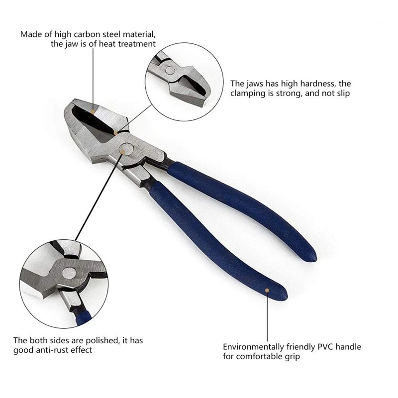 Материал ------ плоскогубцы для резки стекла изготовлены из стального материала, челюсть термообработки, прочная и долговечная.
