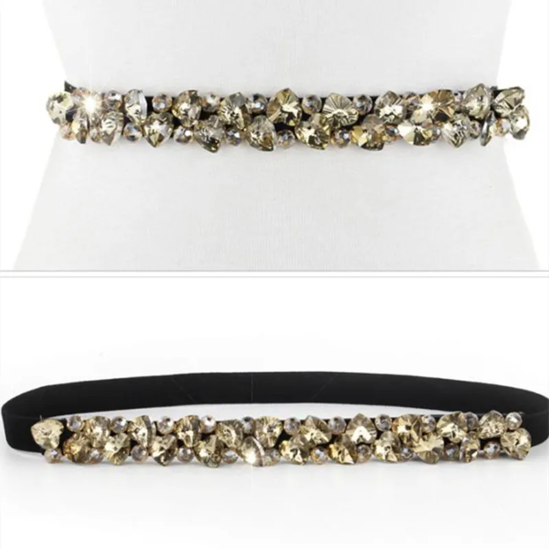 Ремень-стразы женский эластичный, черного цвета