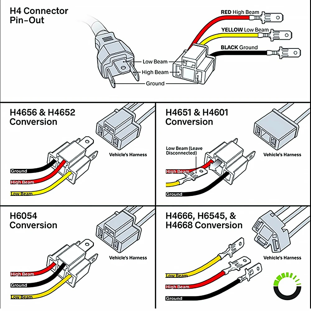 [Характеристики]: если вы обновляете галогенные лампы, или если ваш 7 "6", "4x6", "5-3/4" или любая другая H4 заглушка фары не работает должным образом, это ваше решение. Жгут проходит мимо источника питания переключателя фары и получает питание непосредственно от автомобильного аккумулятора.