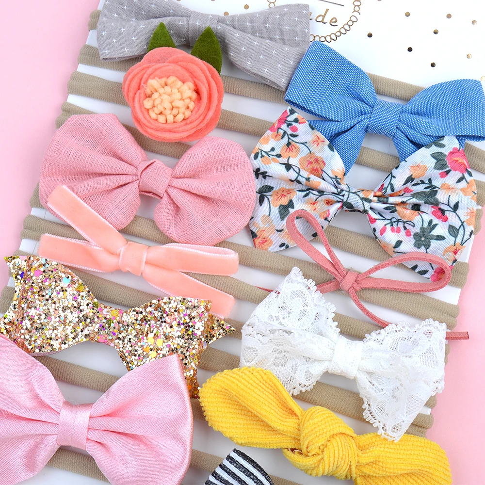 1 комплект, однотонные детские повязки на голову с бантом в горошек, эластичные хлопковые повязки для волос для девочек, нейлоновые повязки для волос в стиле принцессы, аксессуары для волос в виде тюрбана