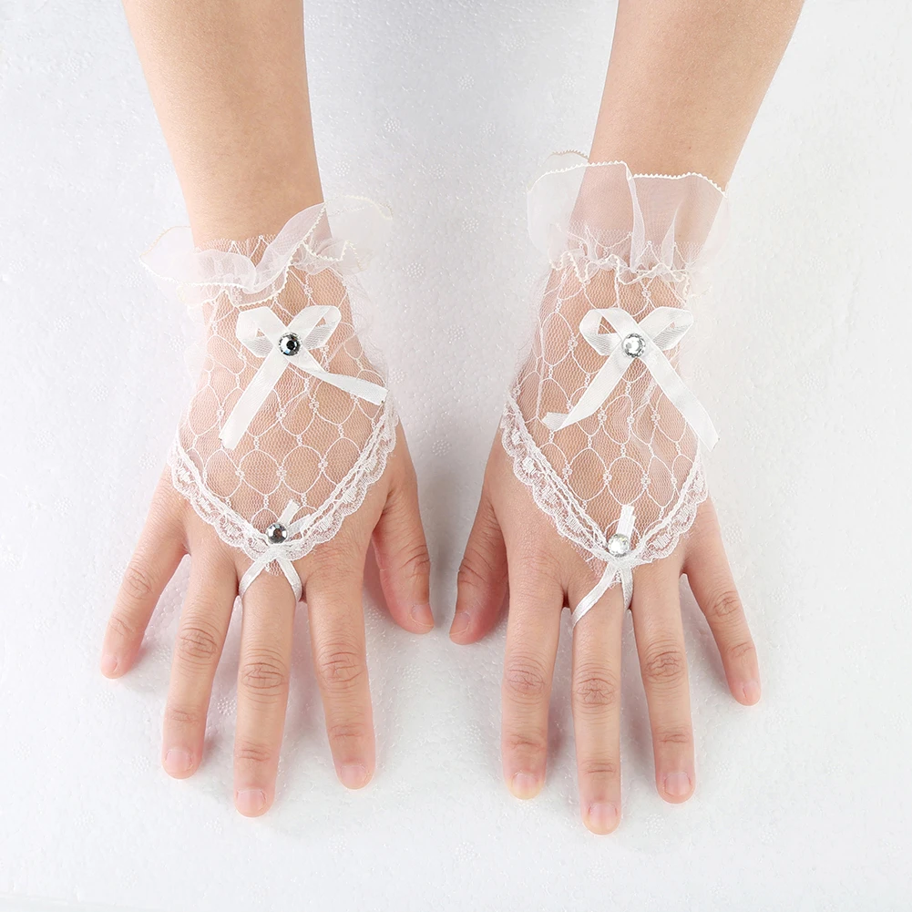 Красивые короткие перчатки без пальцев, украшенные милым бантом.