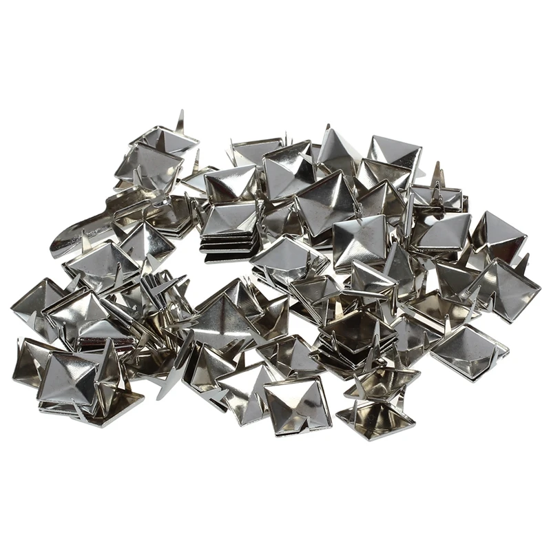 * SODIAL(R) прибл. 100 шт 2 зубцов Пирамида Шпильки 12 мм серебро-отлично подходит для любого кожевенного ремесла проекта, вельветов, сумок, браслетов, курток или любого типа одежды