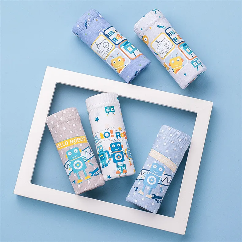 5 шт./лот, трусы с рисунком робота для мальчиков, нижнее белье детские трусики хлопковые дышащие разноцветные трусы для мальчиков, От 1 до 14 лет