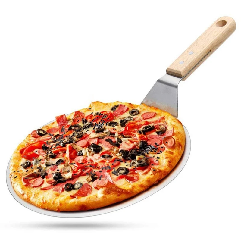 Кожура для пиццы из нержавеющей стали, 10 дюймовая круглая металлическая кожура для пиццы с деревянной ручкой и режущее колесо для пиццы и лопата для пиццы для сервировки