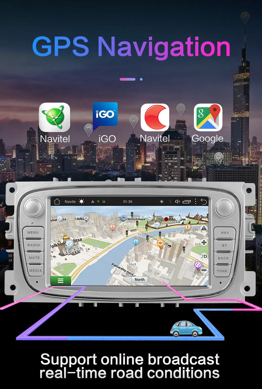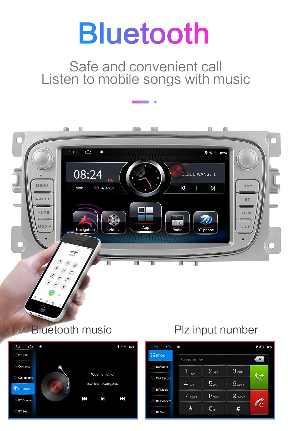 2din Android 8,1 для Ford Focus S-Max Mondeo 9 Galaxy C-Max 7 "GPS автомобильный радиоприемник Bluetooth AM стерео аудио мультимедийный плеер