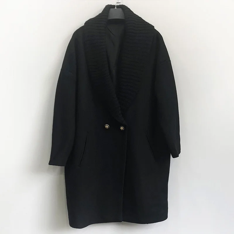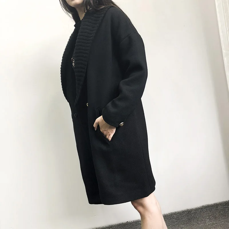 Осенне-зимнее двурядное пальто на пуговицах с воротником-костюмом Корейская