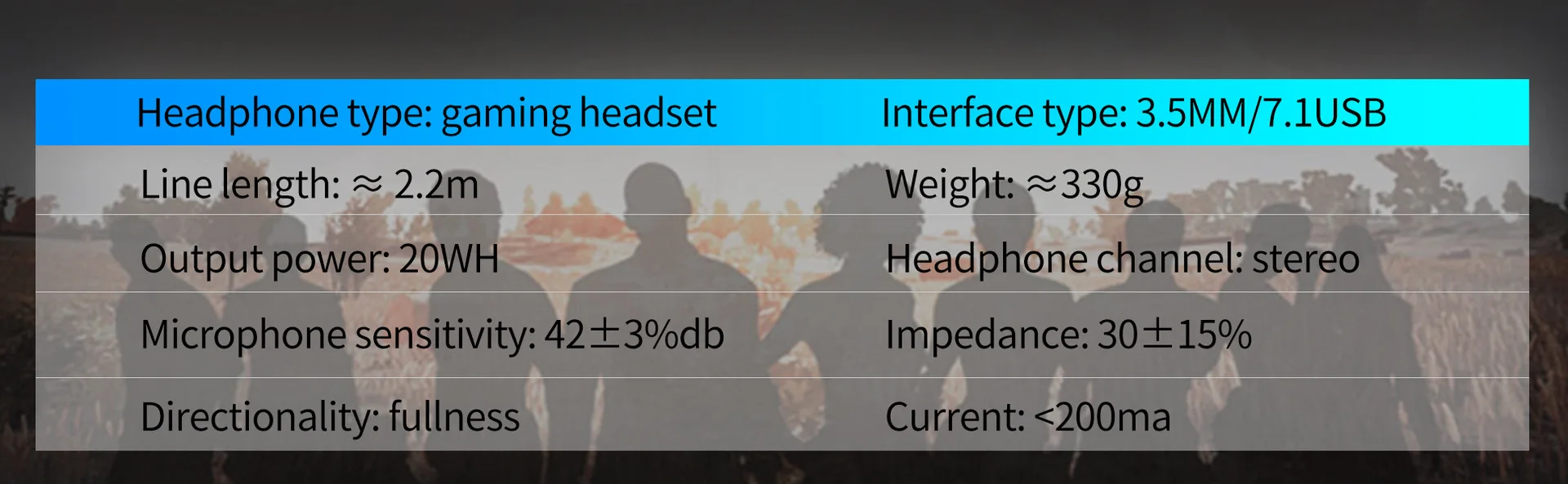 Диаметр динамика: 50 мм Импеданс: 2.2KΩ Чувствительность: 42 дБ (дБ) Частотный диапазон: 20 Гц-20 кГц Сопротивление микрофона: 2,2 ком Светодиодный Рабочее напряжение: 5 в пост. Тока Рабочий ток: ниже 100 мА Гарнитура Интерфейс: USB + 3,5 мм стерео Длина кабеля: прибл. 2,0 м