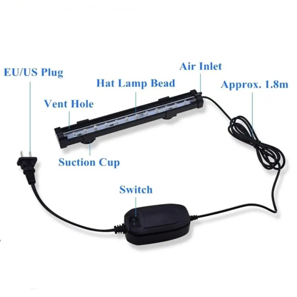 8. Светильник содержит прокладку воздуха, которая работает при включении воздушного насоса. Увеличение кислорода и освещения, две функции в одном, значительно экономит пространство в аквариуме.