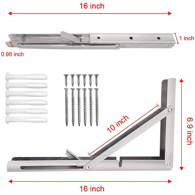 [Легко установить] Складные шарнирные кронштейны легко установить и сложить, так что вы можете построить складной кронштейн для полки или небольшой настенный складной стол для вашего дома или гаража. Он может быть установлен на любой вид стены, не повреждая стену. Если у вас есть какие-либо вопросы по установке и использованию продукта, пожалуйста, свяжитесь с нами по электронной почте. Мы постараемся сделать все возможное, чтобы решить все ваши проблемы.
