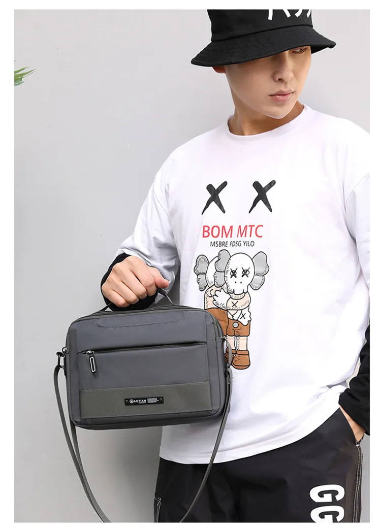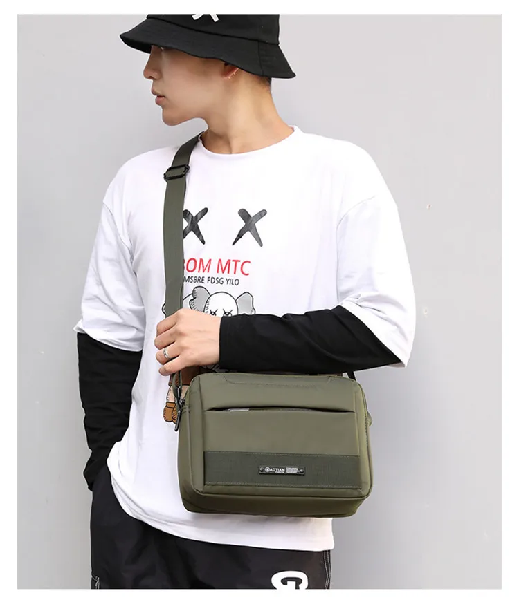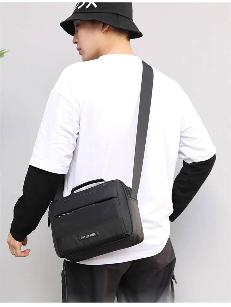 2020 модная мужская сумка через плечо, нейлоновая Водонепроницаемая одноцветная сумка-мессенджер на молнии, Универсальная мягкая черная сумка с несколькими карманами