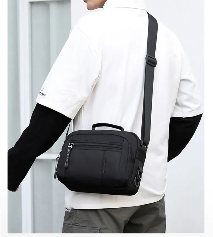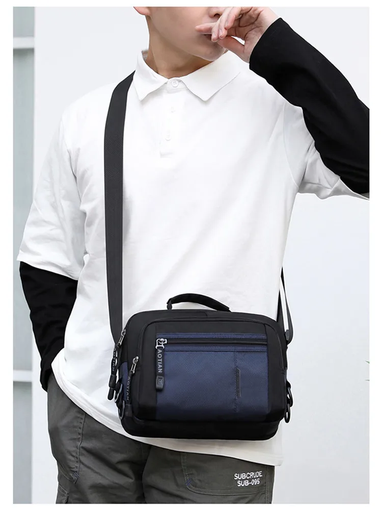 Мужская нейлоновая сумка через плечо 2020, водонепроницаемая сумка из нейлона на молнии с пэчворком, универсальная черная Дорожная сумка с несколькими карманами