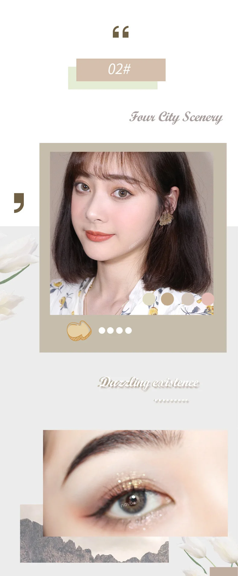 * Шелковистая мягкая и нежная текстура основы, хорошая пластичность, так что цвета могут быть наложены слоем, эффект длительный, естественный и очаровательный, без порошка, без цветения. Десятицветная палитра, подходит для вечеринок, студий макияжа, сценического макияжа, для удовлетворения различных потребностей разных макияжей.