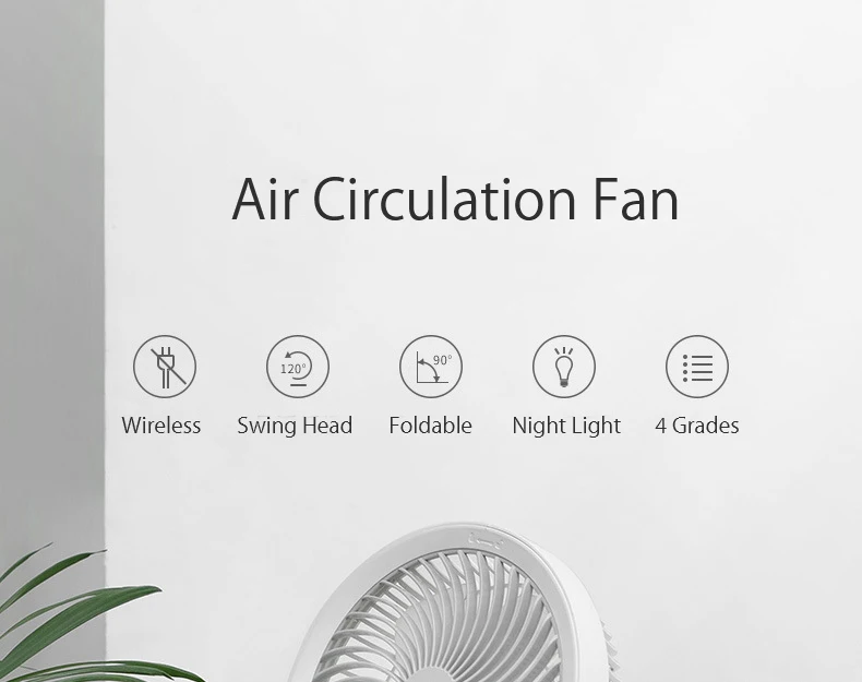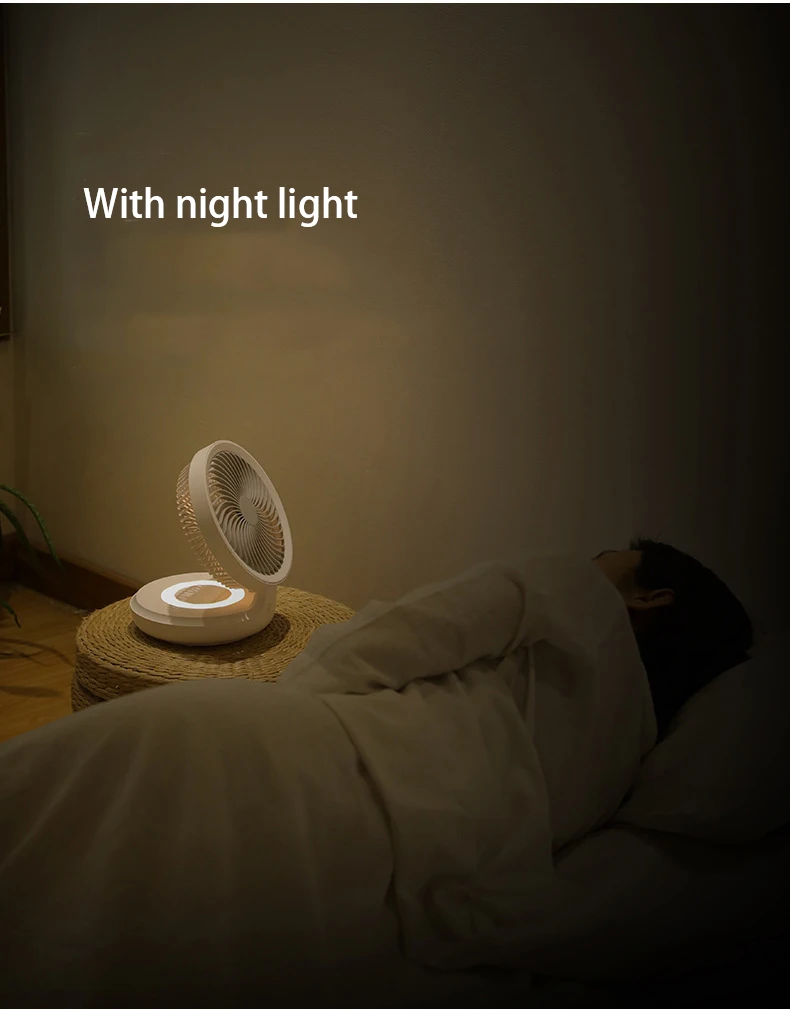 Воздушный циркуляционный вентилятор с поворотной головкой, настольный вентилятор, беспроводной, с ночным светом, складной, портативный, с естественным ветром, USB, перезаряжаемый вентилятор