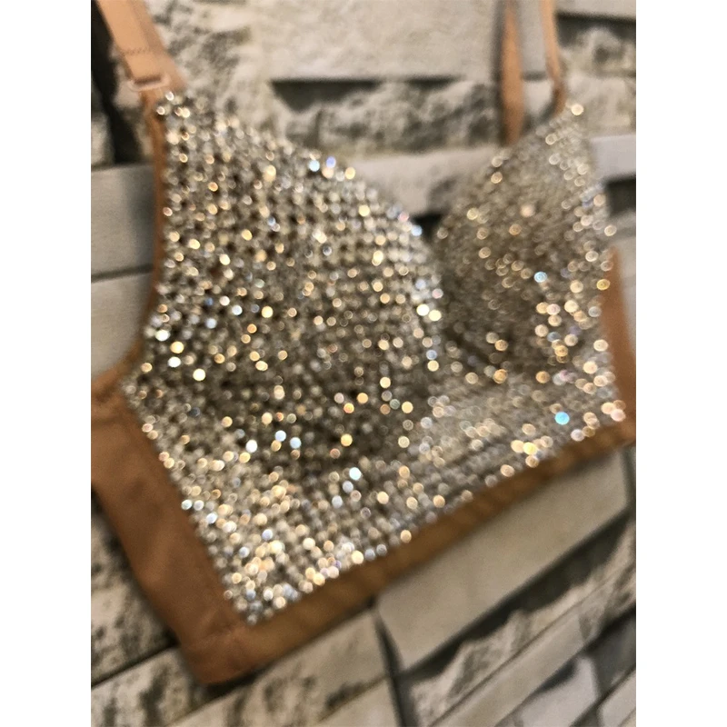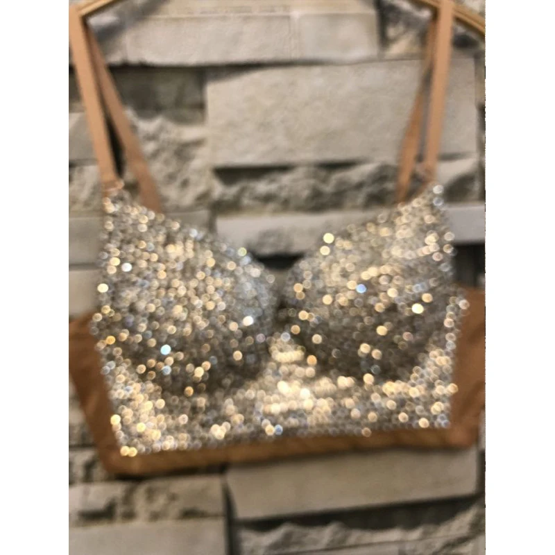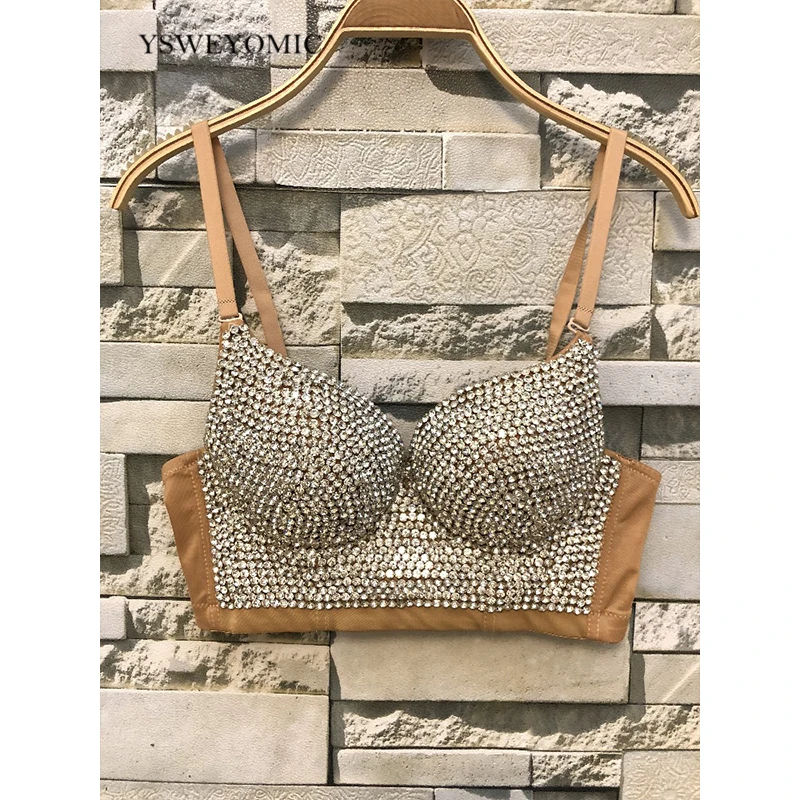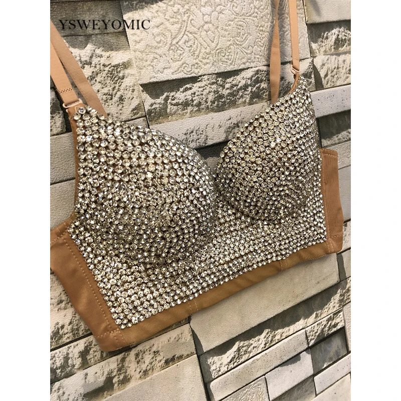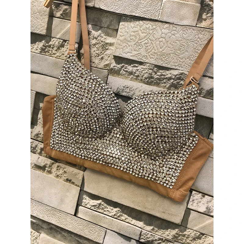 Топ-бюстгальтер 2020 к требованиям заказчика; Сверкающие; С украшением в виде кристаллов высокого качества телесного цвета для женщин, сексуальный бюстгальтер, набор Применение на сцене танца Bralet Топ D-003