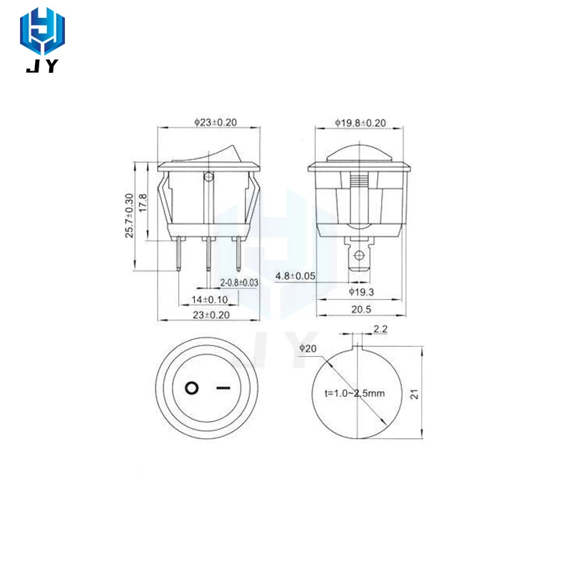 Круглый переключатель лодки 2 файла 2 фута KCD1-105 небольшой источник питания отверстие 20 мм подходит для аудио, беговой дорожки, рисоварки, электрической плиты, диспенсера воды и т. Д.