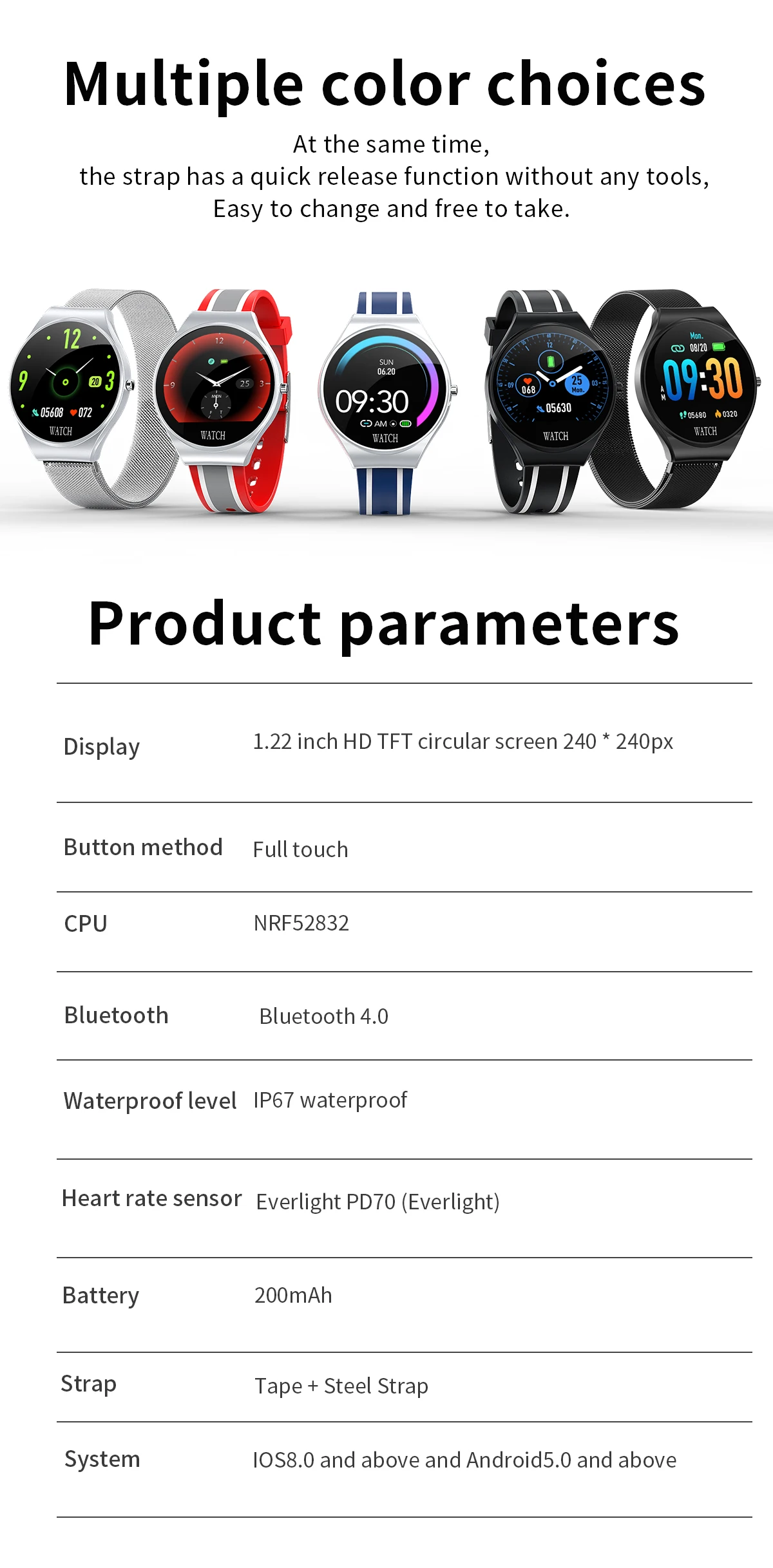 Всегда обращайте внимание на индекс здоровья и измеряйте результаты в любое время, в любом месте, непосредственно отображайте данные на часах, Синхронизируйте мобильное приложение, следите за своим телом, con,ndition