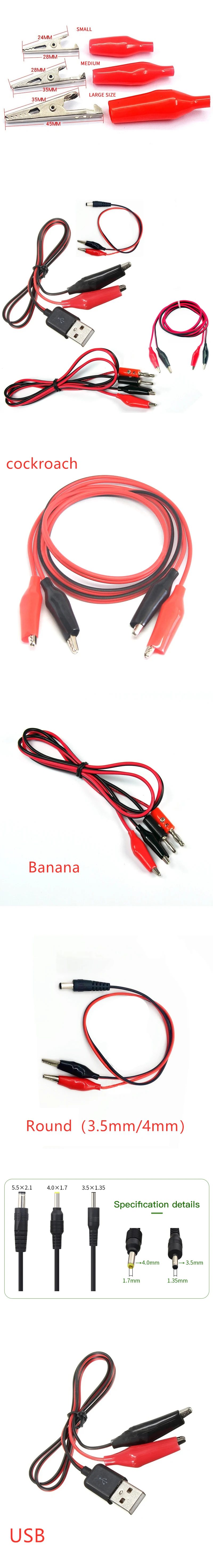 Банан Круглый (круглое отверстие имеет 3,5 мм и 4,0 мм калибра, по умолчанию 3,5 мм) Таракан USB Характеристика: Патроны аллигатора имеют размер 24 мм 28 мм 35 мм 100% новое качество Зажимы аллигатора полностью изолированы для легкой вставки в Наконечник Зонда Наконечник Зонда закален для обеспечения пассивации через непрерывное использование Электрические Тестовые провода для мультиметров, источников питания и другого электронного оборудования