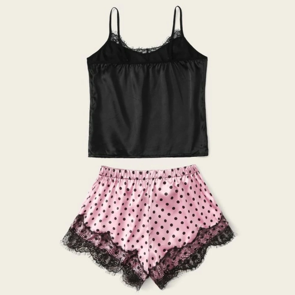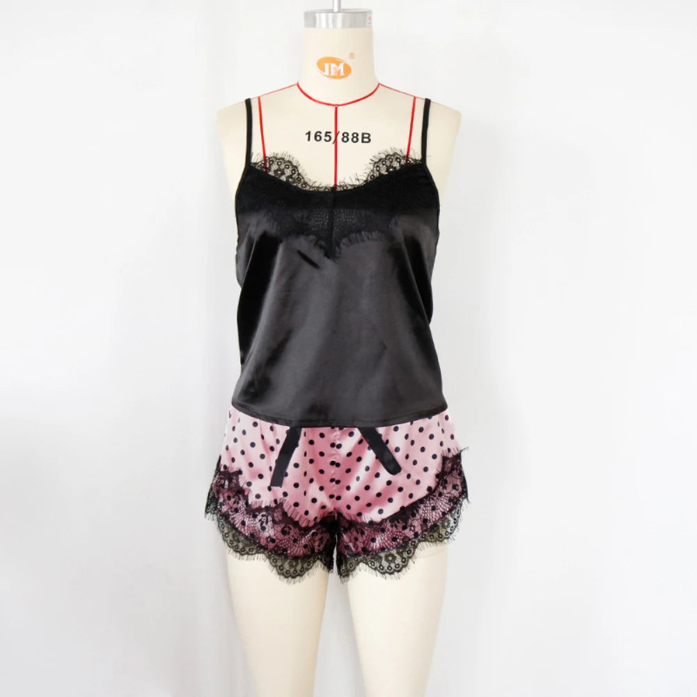 Сексуальный женский кружевной комплект одежды для сна в стиле пэчворк, камзол, с принтом в горошек, с бантом, шорты