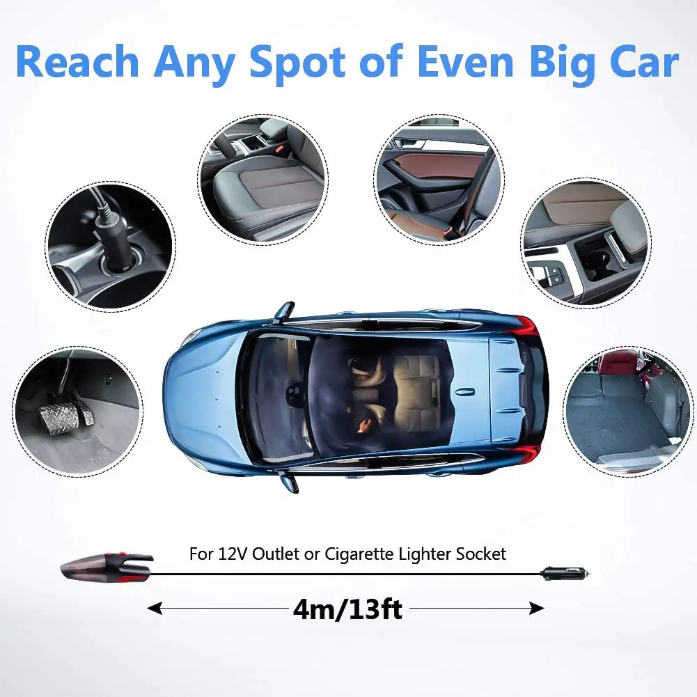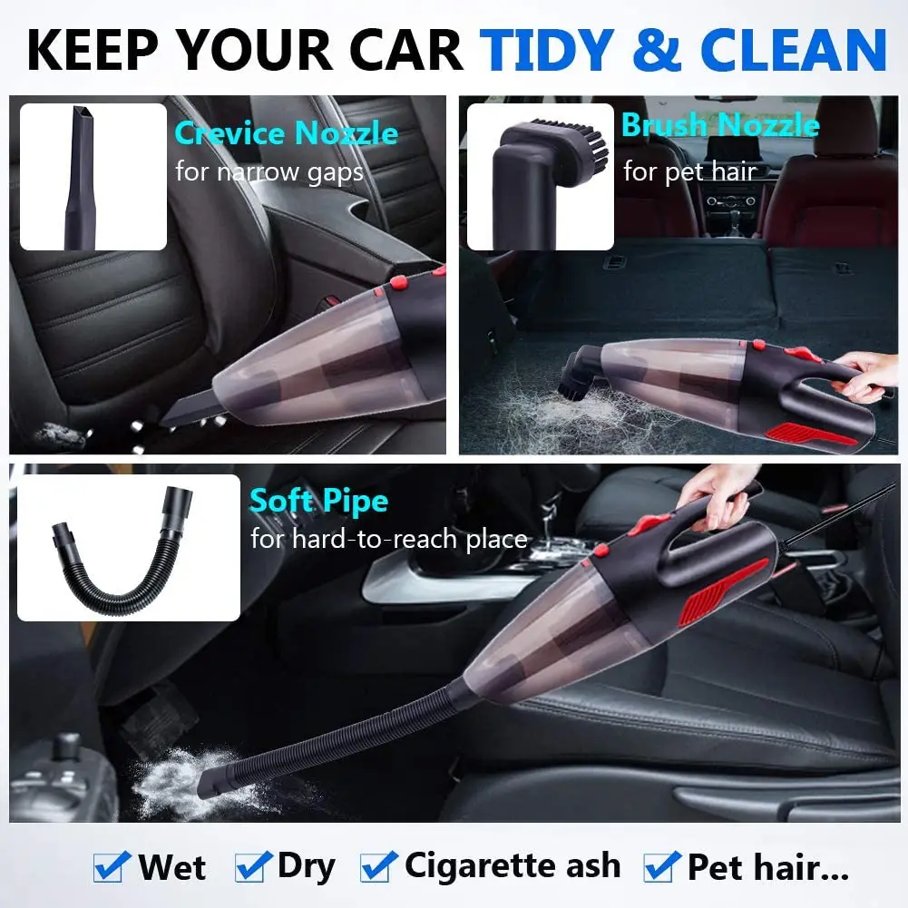 Обновленный автомобильный пылесос имеет гораздо более сильное всасывание, чем раньше, этот автомобильный пылесос достаточно мощный, чтобы всасывать пыль, волосы домашних животных, крошки и другие мелкие вещи в автомобиле. Быстрая и легкая чистка в проводимом ручном вакууме автомобиля с прочной и высокой мощностью, не беспокойтесь о проблеме продолжения, вы можете использовать этот автомобильный мини-пылесос, когда и где бы вы ни хотели, для вашего автомобиля, отличный помощник для отпуска.