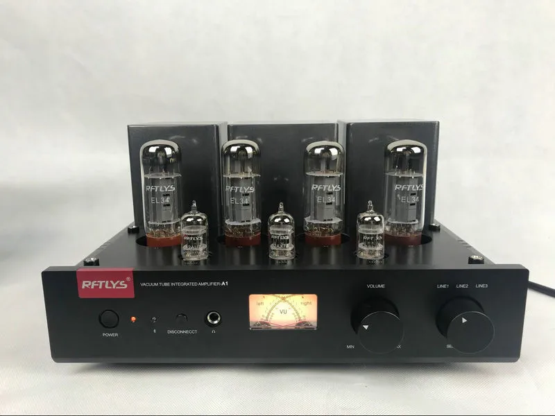 Комбинированный EL34 трубка, усилитель мощности:Параметры продукта:1: 4 шт. EL34B, 2 шт. 12AU7 и 1 шт. 12ax7,2: Номинальная мощность 35 Вт3: вес нетто машины составляет около 15 кг4: Размер: w340мм x d455мм x h18мм5: трехполосный вход сигнала. Есть выход 4 Ом 8 Ом.