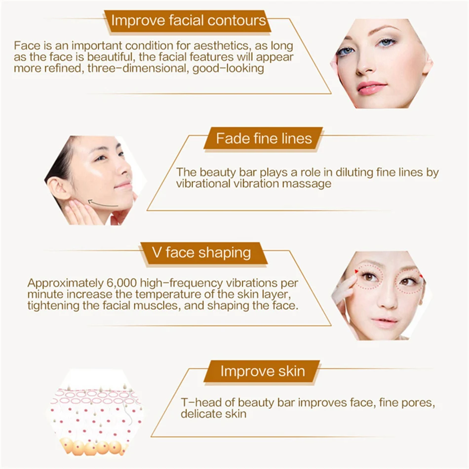 Т-образная головка добавляет мягкую вибрацию для нажима и похлопывания кожи лица и терапевтической точки. Расслабить мышцы лица.