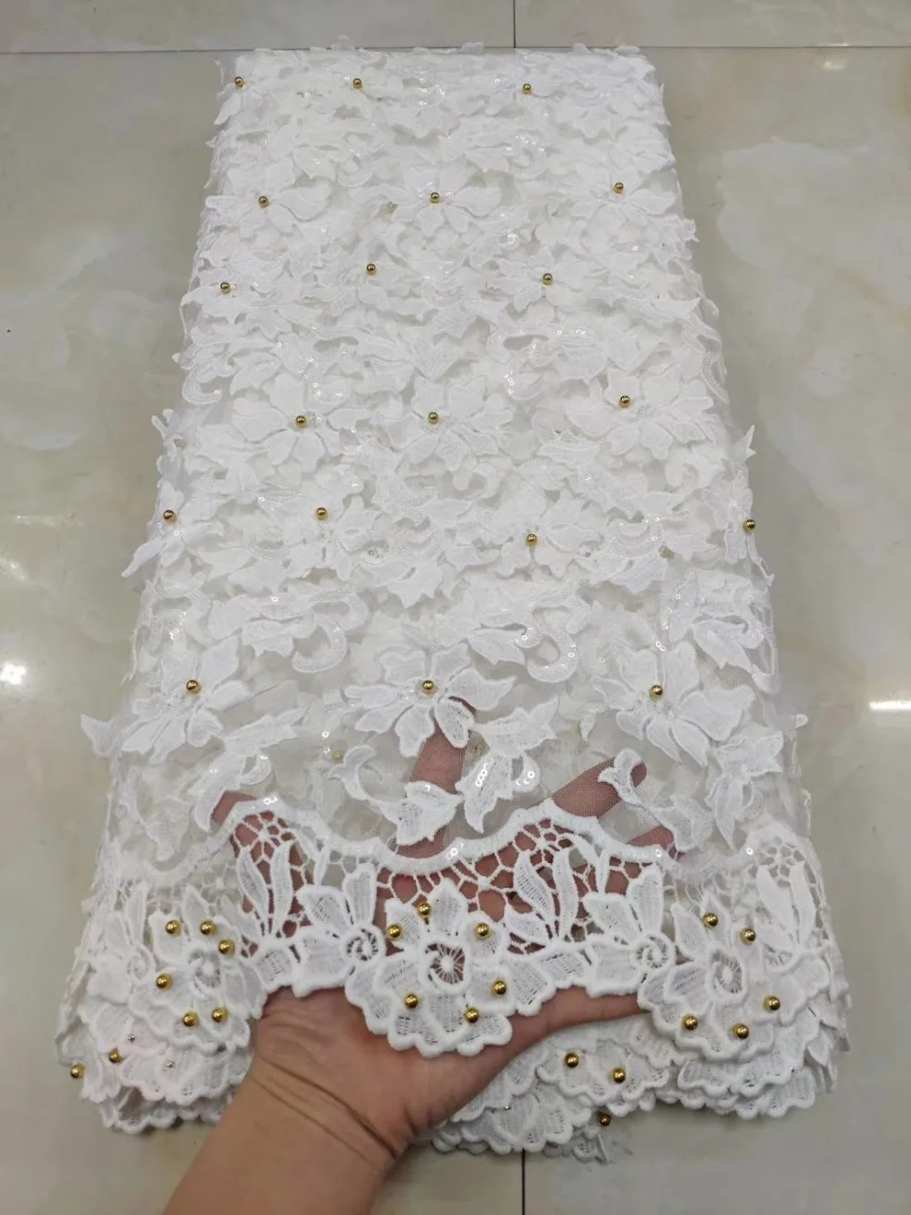 В африканском стиле золотого цвета из бисера кружевной ткани 2021 вышитое кружево
