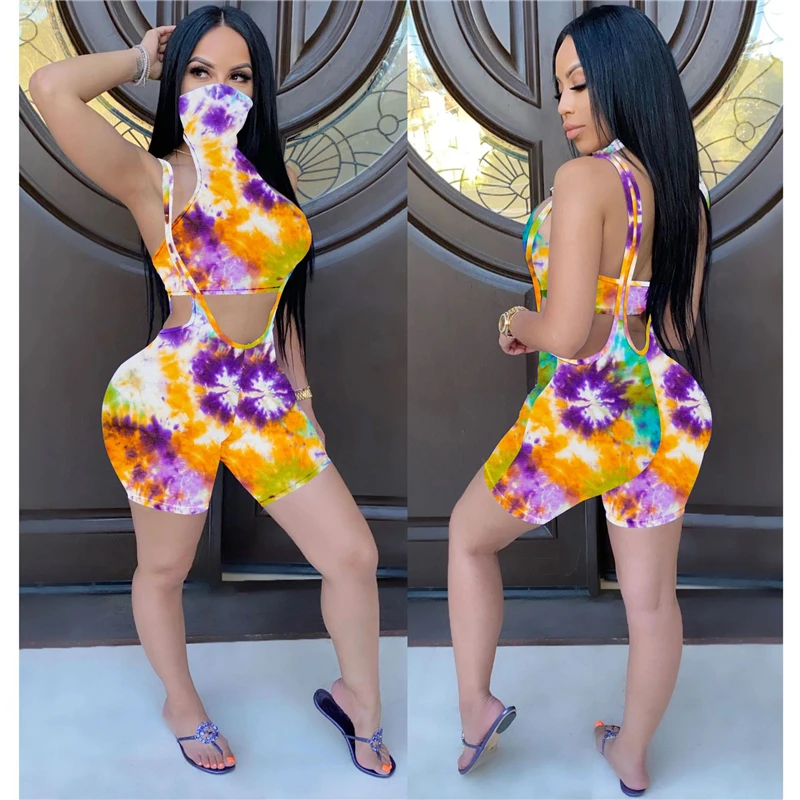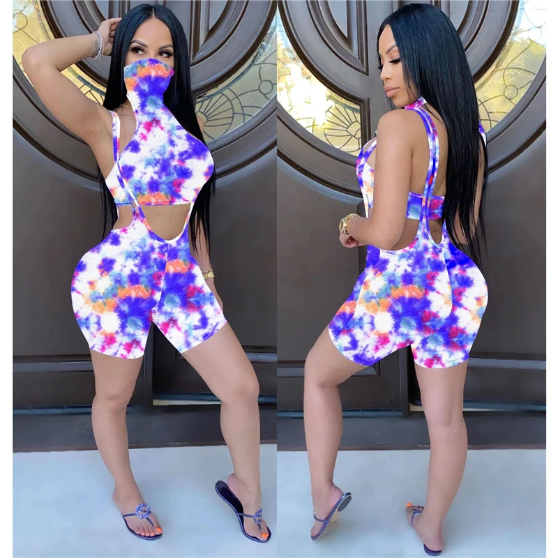 Adogirl «вареный» принт женский набор маска подключен без рукавов Топ шорты на подтяжках, летний повседневный костюм из 2 предметов, спортивный костюм