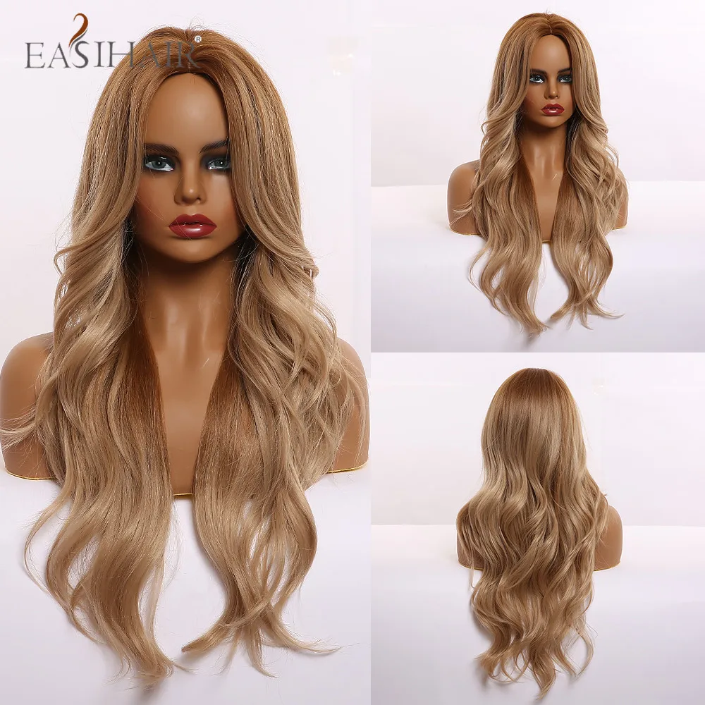 Короткие прямые синтетические парики с эффектом омбре коричневые блонд челкой
