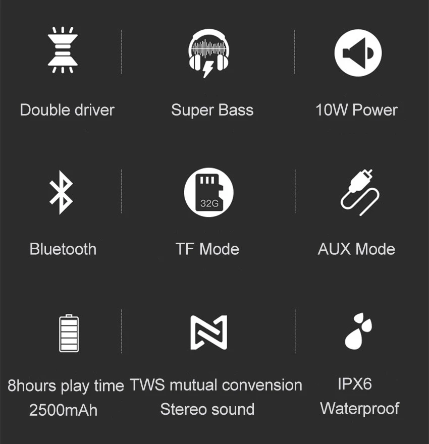 Беспроводная звуковая система HD Бас Звук встроенный микрофон IPX6 Водонепроницаемая Беспроводная портативная стереоколонка Bluetooth для дома и улицы