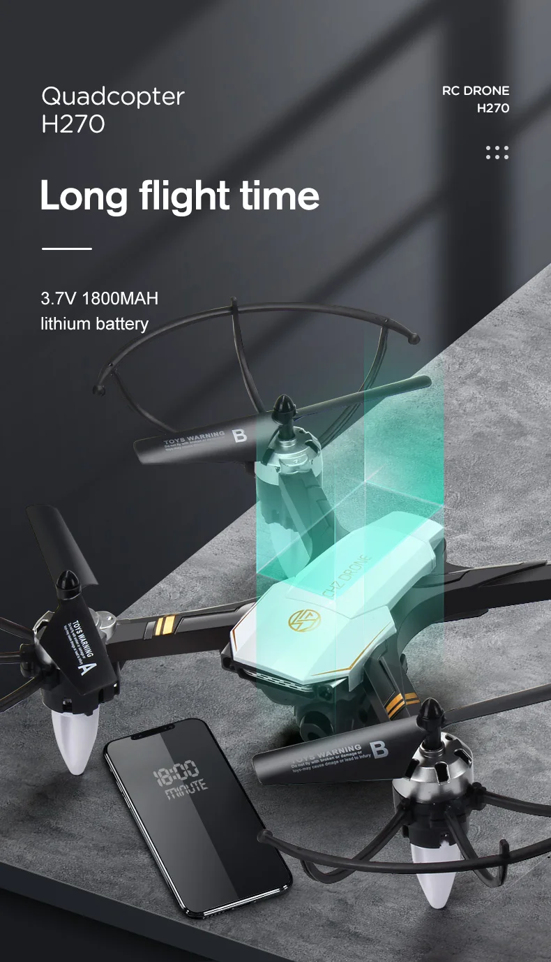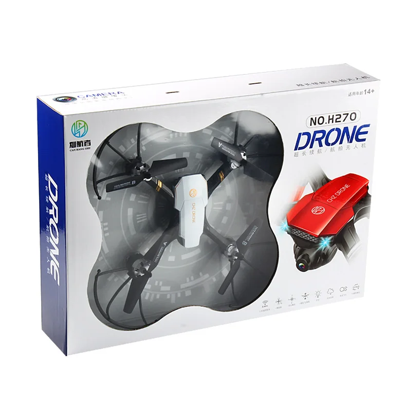 Название продукта: h270 устойчивый к падению БПЛА Модель продукта h270 Вес изделия 0,59 кг Размер цветной коробки: 45,5*9,5*32 см Размер изделия: около 30*30*10 см; Диагональ: 35 см Цвет изделия: жемчужно-белый, флуоресцентный красный, флуоресцентный синий Батарея 3.7v180 0mah батарея дистанционного управления AAA батарея * 3 (не входит в комплект) Время полета: длительная выносливость: около 15-18 минут; Время зарядки: около 3 часов Количество упаковки: 12 коробок Размер внешней коробки: 59*47*67 см Вес брутто нетто: 9 кг/7 кг Другие аксессуары: запасные Крылья * 2, отвертка * 1, usb-кабель для зарядки * 1, руководство по эксплуатации * 1