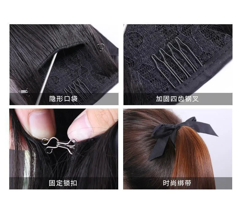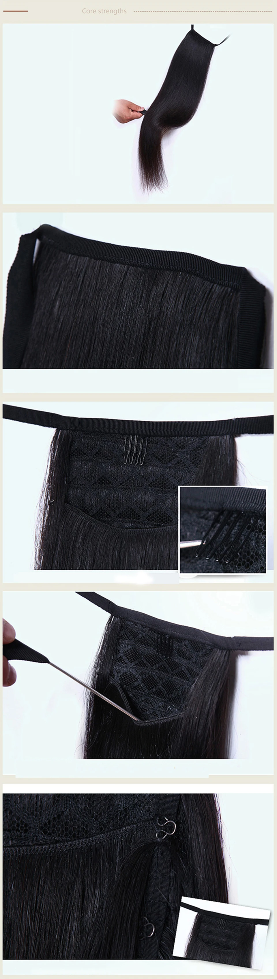 1. Товар: посылка из человеческих волос с хвостом 2. Цвет: натуральный черный, коричневый светильник (смешанный черный цвет), темно-коричневый (смешанный черный цвет) 3. Материал волос: 100% Человеческие волосы remy 4. Текстура: прямая (будет немного волна, вызванная посылка) 5. Качество волос на заколках: более Невидимый; Прочный ★Не запутывается и не линяет. Может длиться около 10 месяцев для хорошего ухода ★CanBe restyle,canbe dye более темный цвет ★100% настоящие человеческие волосы гарантия ★Легко и удобно носить