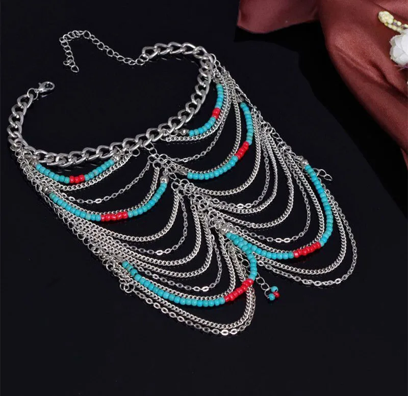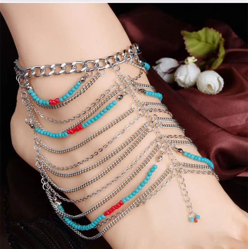 Браслет на ногу Женский из розового золота серебристого цвета Бохо пробы с