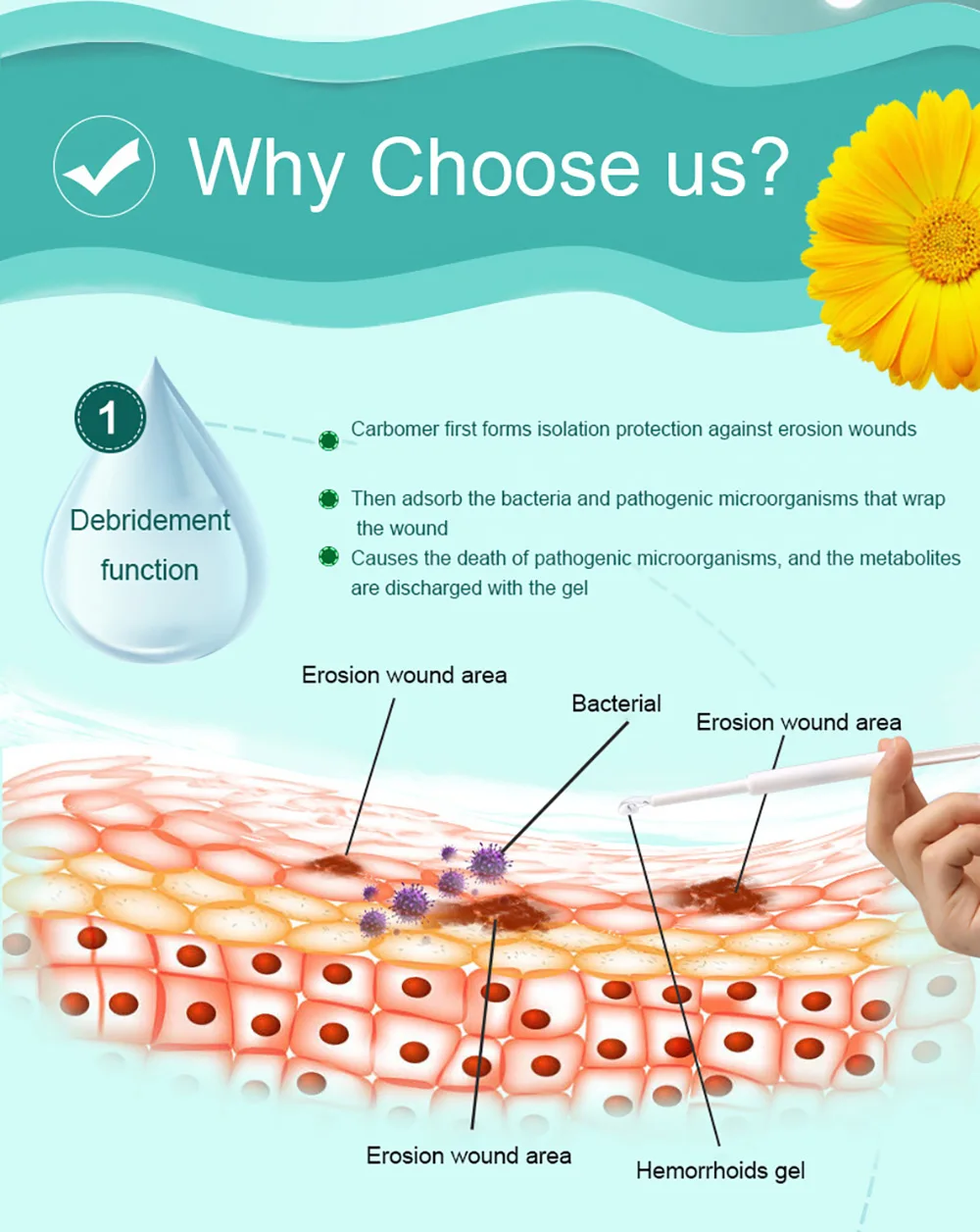 При заживлении геморроя, снимается Анальная боль, вызванная внутренним геморроем, смешанным геморроем, перегрузкой слизистой оболочки, кровотечением в стуле, запорами. Применение метод: 1. Мойте руки. 2. Разорвите упаковку продукта. 3. Усилитель и гель. 4. Снимите защитную крышку. 5. Установите усилитель. 6. Выдавите гель в анус.