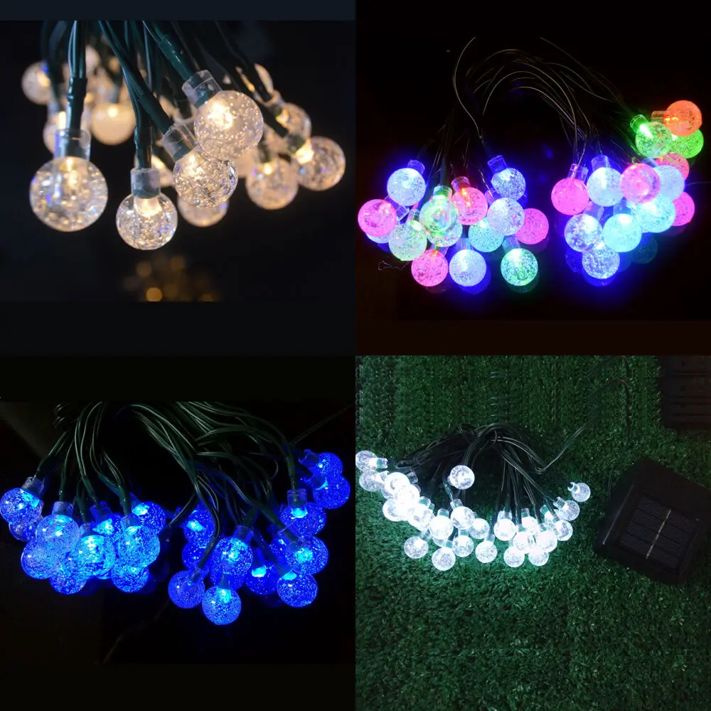 Светодиодные лампы на солнечной батарее. Солнечная панель заряжается непосредственно на солнце при дневном свете, глобус автоматически включается ночью и выключается утром. Эта светодиодная гирлянда встроена в перезаряжаемую батарею Ni-MH заряжается солнечной энергией в дневное время (просто подвергая солнечную панель полностью воздействию солнца). Светильник водонепроницаемый, подходит для использования на улице, не беспокойтесь о каплях дождя. Простота в использовании: 2 кнопки переключения: включение/выключение питания (автоматическое включение в сумерках, автоматическое выключение в день). После воздействия солнечного света 4-8 часов, часто может работать более 8 часов. Это дает нам больше времени, чтобы пройти всю церемонию и прием или другие вечерние. Каждая прядь включает в себя 30 индивидуальных горит светодиодный хрустальный шар огни, общая длина и формирующая листы для кровли 4 м/6,5 м/7 м, каждый светодиодный пространство 4,7 inch/12 см, в форме капли воды диаметр 2 см. Солнечный светильник идеально подходит для сада, двора, коридора, патио, Свадебные вечерние, вечерние, спальни и т. Д.